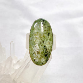 This Green Kyanite Oval Cabochon Ring features a polished, natural stone set in sterling silver, highlighting its grounding and balancing energy. Green Kyanite works with the heart chakra, helping to align emotions, promote inner peace, and encourage personal growth. Its deep green hues symbolise connection with nature and renewal, making this ring a perfect everyday piece for those drawn to its calming yet empowering energy.