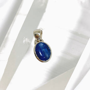 This petite Nepalese Kyanite pendant features a brilliant faceted oval stone that shimmers with cool blue tones. Set in .925 sterling silver, it’s known for promoting balance, alignment, and mental clarity, making it ideal for those seeking calm focus and energetic flow.