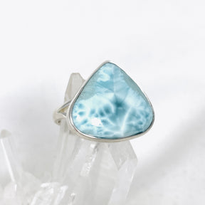 This Larimar Teardrop Ring is crafted with genuine Larimar gemstone and surrounded with a 925 sterling silver setting. The elegant design is perfect for any occasion.