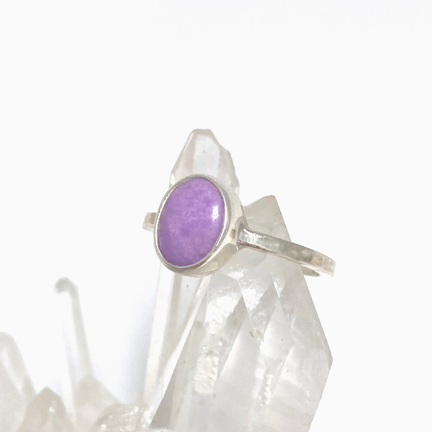 This Phosphosiderite oval cabochon ring is set in sterling silver and offers a soft, calming presence. With its gentle lavender tones, Phosphosiderite is often chosen for emotional healing and nervous system support.