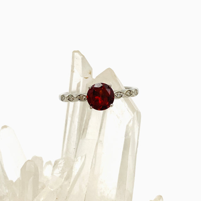 Garnet Round Faceted Ring with CZ accents Size 8.75 HRGJ-63