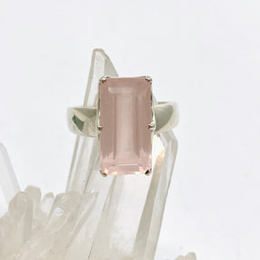 Rose Quartz Rectangular Faceted Ring Size 10.5 PRGJ877