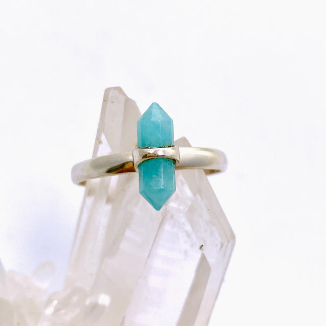 The Amazonite Double Point Ring is a beautiful blend of tranquility and vibrant energy. Amazonite is known for its soothing qualities, promoting communication and harmony. This petite ring features two stunning Amazonite points, making it a unique and powerful accessory for those who value peace and balance.