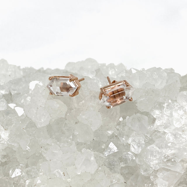 Crafted with stunning Clear Quartz and plated Rose Gold, these stud earrings add a touch of elegance to any outfit. The Clear Quartz is known for its purifying properties and the Rose Gold complements any skin tone.