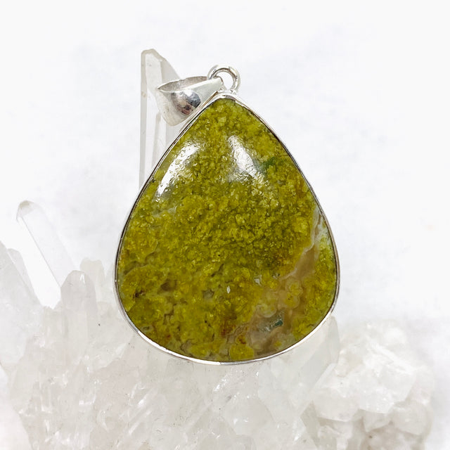 Handcrafted with Green Opal, this sterling silver pendant fosters emotional healing and renewal. Known for its ability to soothe the heart, it helps release past traumas and invites inner peace.