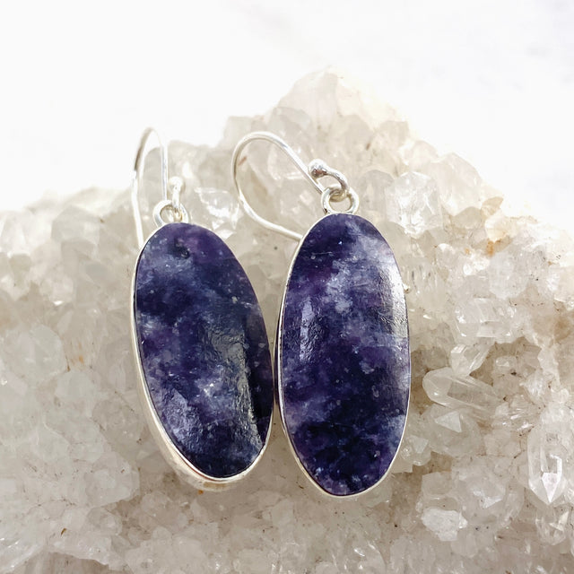 These Lepidolite Oval Cabochon Earrings feature smooth, oval-shaped stones set in a simple yet stylish design. The soft hues of Lepidolite bring a calming energy, making these earrings perfect for adding a touch of elegance to any outfit.