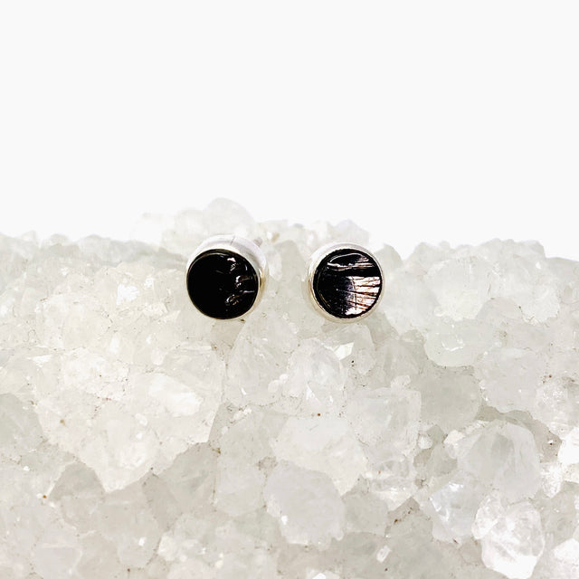 Shungite Round Raw Stud Earrings 7mm PSE034