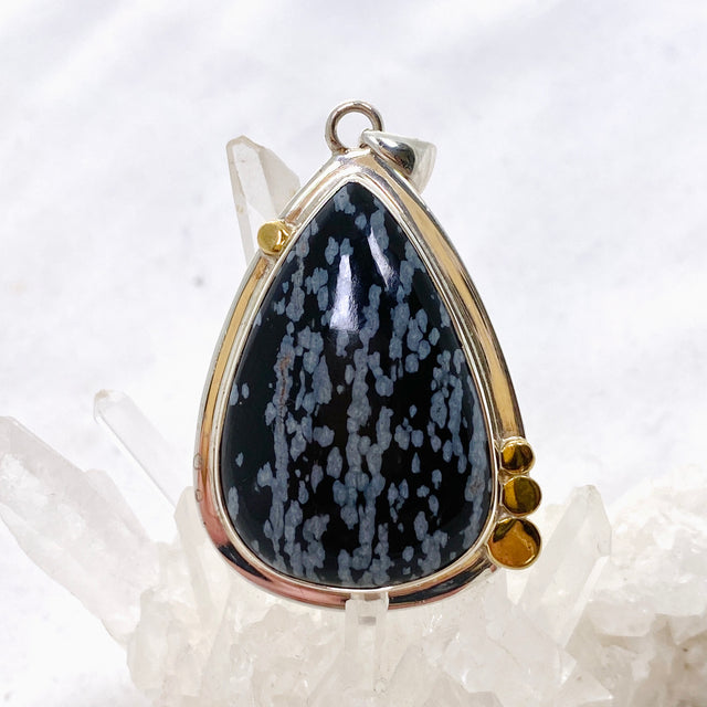 Snowflake Obsidian Teardrop Cabochon Pendant in a Decorative Setting KPGJ4773