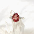 This elegant Strawberry Quartz oval faceted ring in size 7 is a striking addition to any jewellery collection. The precision-cut gemstone sparkles with deep red tones, perfectly complemented by the sterling silver band. Known as a stone of love and joy, Strawberry Quartz is said to inspire positivity and emotional balance. A refined piece that’s perfect for any occasion.