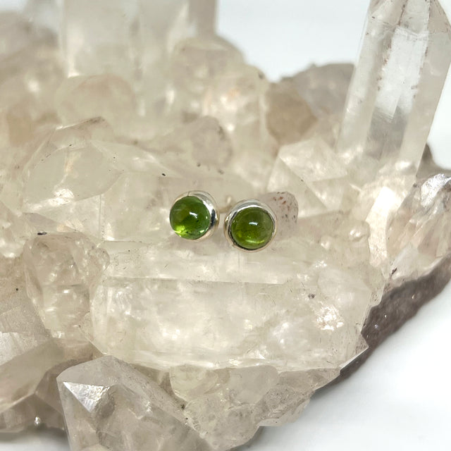 These green tourmaline stud earrings, set in sterling silver, feature the rich, vibrant green of this powerful gemstone. Known for its healing properties, green tourmaline is believed to promote growth, balance, and physical vitality. It is often worn to support emotional healing, foster inner peace, and enhance energy flow.