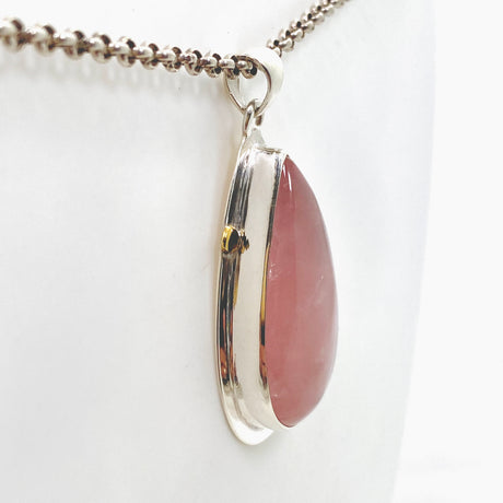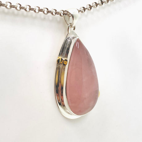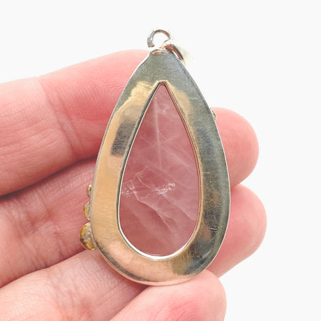 Rose Quartz Teardrop Cabochon Pendant in a Decorative Setting KPGJ4687