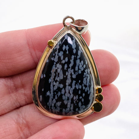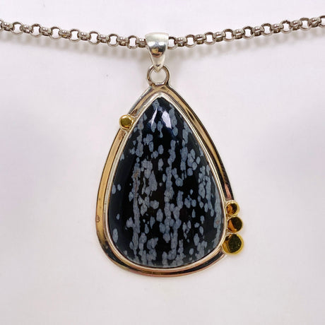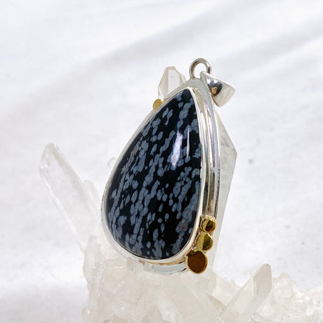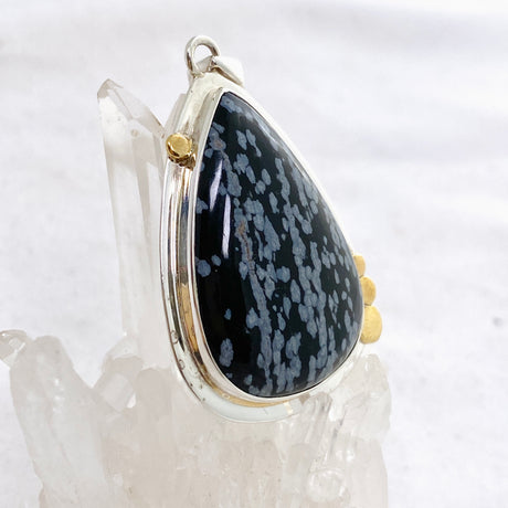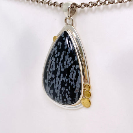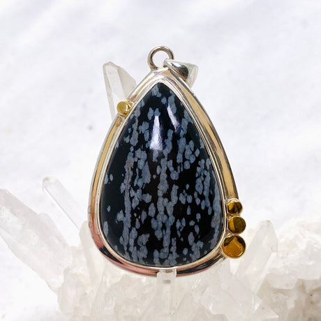 $105.00Unit price /UnavailableSnowflake Obsidian Teardrop Cabochon Pendant in a Decorative Setting KPGJ4773