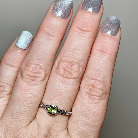 Peridot Round Faceted Ring in a Decorative Setting R4807