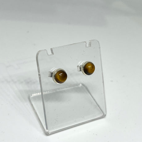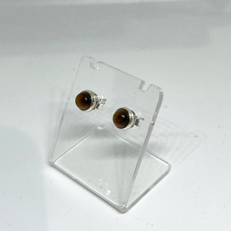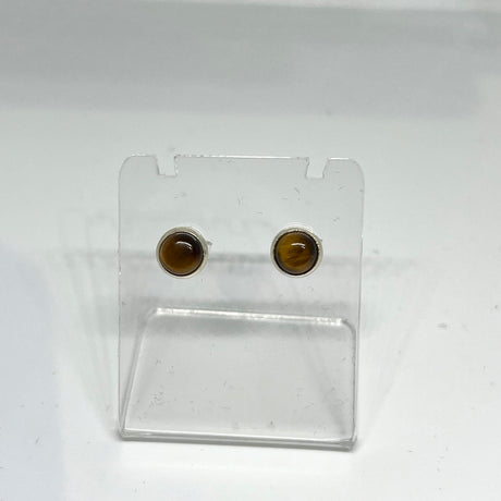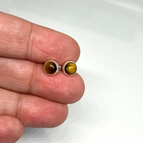 Tiger's Eye Round Cabochon Bezel Set Stud Earrings 5.5mm PSE024
