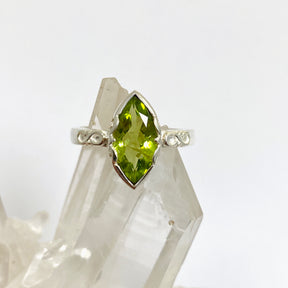 Bring some elegance and energy to your jewellery collection with this Peridot Faceted Marquise Ring. The marquise-cut Peridot stone is set in a detailed, decorative setting, highlighting the stone's natural green brilliance. Known for its healing and balancing properties, Peridot is a stone that promotes positive energy, renewal, and abundance. This ring is perfect for those who seek a beautiful, meaningful piece to wear daily or for special occasions. Its unique design and vibrant energy will complement any style effortlessly.