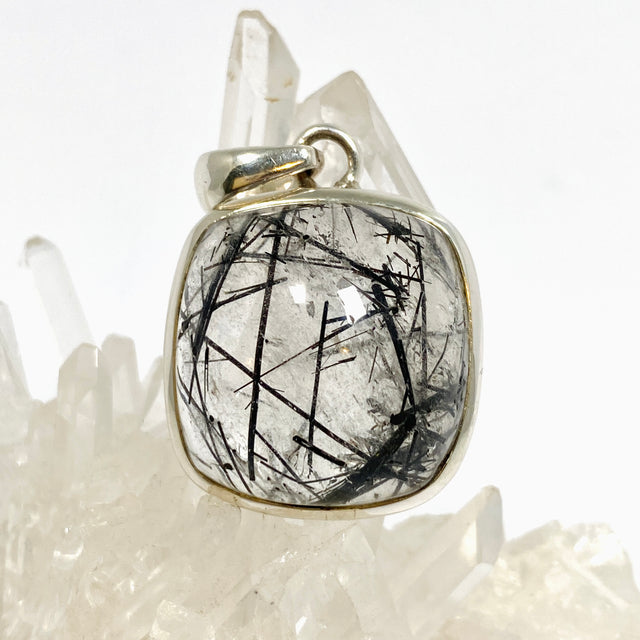 Smooth square cabochon tourmalinated quartz pendant showcasing the natural beauty of the stone’s black inclusions against clear quartz. This stone supports emotional clarity and grounding energy, making it a versatile addition to your collection.