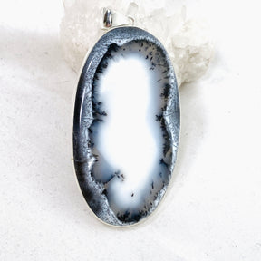 Known for its calming properties, this Dendritic Opal pendant in sterling silver supports emotional healing and balance. A beautiful piece for enhancing inner peace and personal growth.