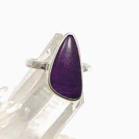 A beautiful freeform sugilite cabochon ring featuring the stone’s rich purple hues and natural patterns. Sugilite is known for promoting emotional balance, spiritual growth, and calming energy.