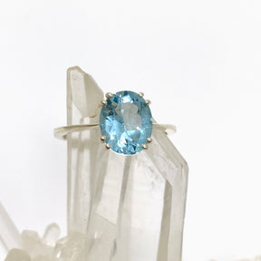Blue Topaz Oval Faceted Solitaire Ring PRGJ793