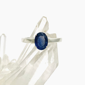 Perfect for those who appreciate both beauty and meaning, this Sapphire oval faceted ring is crafted to highlight the gemstone's brilliance. The rich blue hues of Sapphire have long been associated with royalty, wisdom, and personal empowerment. Set in sterling silver, this ring offers a refined and timeless look while also serving as a talisman for focus and protection. Ideal for daily wear or as a cherished gift.