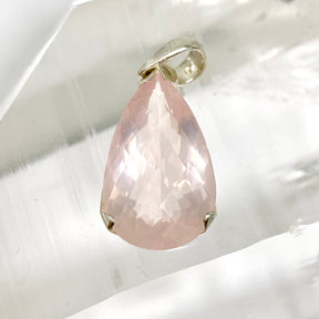 A refined sterling silver pendant showcasing a teardrop faceted Rose Quartz gemstone that glows with soft warmth. Rose Quartz is known for promoting self-love, compassion, and emotional balance, making it one of the most loved healing crystals. In crystal lore, it’s believed to gently open the heart chakra, encouraging kindness and inner peace.