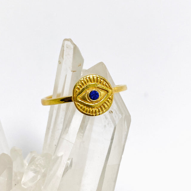 Blue Cubic Zirconia Evil Eye Gold Plated Ring RG586 - Size 7 is backordered and will ship as soon as it is back in stock.