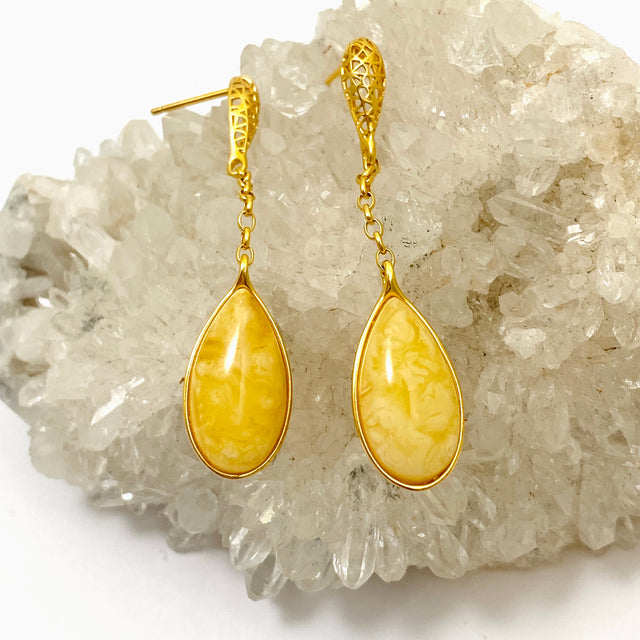 Baltic Butter Amber Gold Plated Earrings AMB279