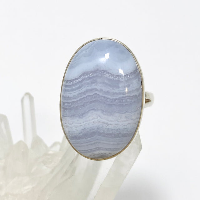 Blue Lace Agate Oval Cabochon Ring Size 9 KRGJ3376