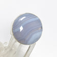 This Blue Lace Agate round cabochon ring showcases the stone’s signature soft blue hues and delicate natural banding. Set in sterling silver, the smooth, polished surface enhances its calming energy, promoting peace and clear communication. Perfect for everyday wear, this ring is a beautiful way to carry the soothing presence of Blue Lace Agate with you.