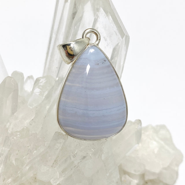 Delicate yet powerful, this teardrop Blue Lace Agate pendant radiates gentle, calming energy. The sterling silver setting frames the smooth cabochon beautifully, allowing the natural banding of the stone to shine through. An ideal choice for those who want to wear a piece that supports relaxation and self-expression.