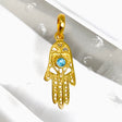 Blue Topaz Round Faceted Hamsa Hand Gold Plated Pendant PPGJ1219