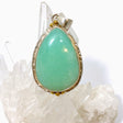 The Chrysoprase teardrop cabochon pendant in a decorative setting blends beauty with powerful healing energy. The teardrop shape symbolizes emotional release and healing, while the Chrysoprase crystal itself promotes emotional balance and heart-centred growth. The intricately designed setting complements the natural beauty of the stone, creating a piece that’s both sophisticated and meaningful.