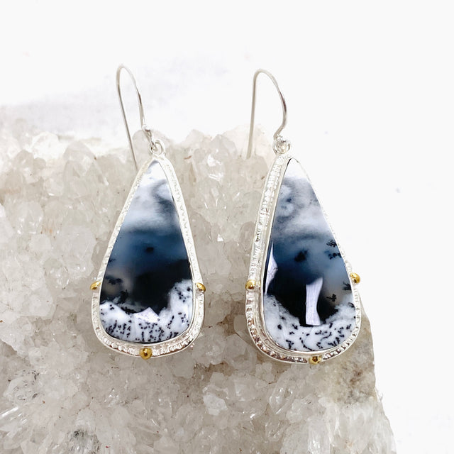 With intricate Dendritic Opal stones, these earrings are perfect for balancing emotions. Known for enhancing self-reflection, they help you connect with nature and embrace life's cycles.