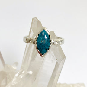 Elegant and earthy, this marquise-cut Turquoise ring is set in a decorative sterling silver setting that highlights the stone’s natural beauty. Turquoise is cherished for its protective and balancing energy, making it a meaningful addition to your collection.