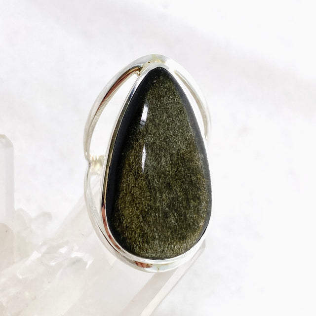 Goldsheen Obsidian Teardrop Cabochon Split Band Ring Size 9 KRGJ3344