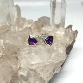 Triangular Faceted Gemstone Bezel Set Stud Earrings PSE015 - Amethyst is backordered and will ship as soon as it is back in stock.