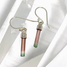 Watermelon Tourmaline Raw Crystal Earrings PEGJ358