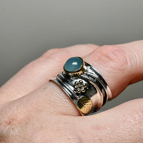 $40.00Unit price /UnavailableBlue Chalcedony Round Cabochon Ring in a Decorative Setting R4198