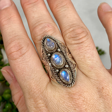 Boho Style Moonstone Multi-Stone Ring Size 7.5 R4068