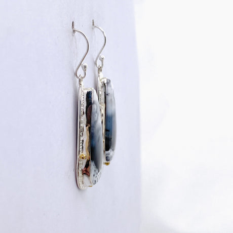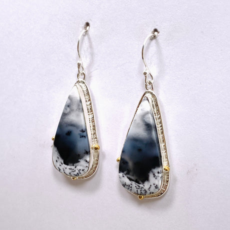Dendritic Opal Teardrop Cabochon Earrings in a Decorative Setting KEGJ1540