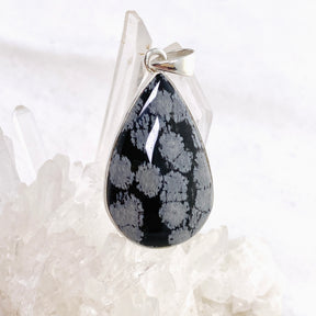 Set in sterling silver, this Snowflake Obsidian pendant is known for encouraging inner reflection. The stone may assist in releasing old patterns and bringing clarity to emotional challenges.