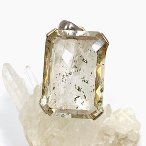 Chlorite Inclusion Quartz Rectangular Checkerboard Faceted Pendant PPGJ898
