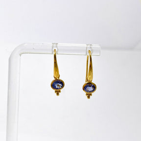 Gemstone Oval Faceted Decorative 1 micron Gold Plated Drop Earrings PEGJ374 - Tanzanite is backordered and will ship as soon as it is back in stock.