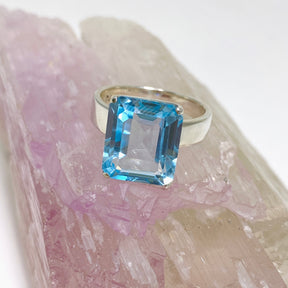 Blue Topaz Emerald Cut Faceted Ring Size 9 PRGJ498 is backordered and will ship as soon as it is back in stock.