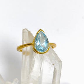 Blue Topaz Teardrop Faceted 2.5 micron Gold Plated Ring Size 7 PRGJ993 is backordered and will ship as soon as it is back in stock.