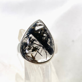 Tourmalinated Quartz Teardrop Cabochon Ring Size 10 PRGJ581