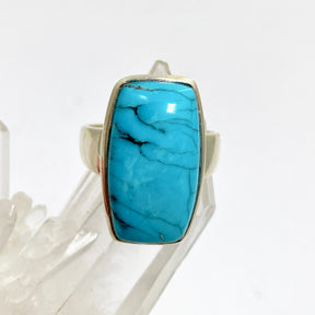 If you love bold lines and strong shapes, this 925 sterling silver ring is for you. The rectangular Arizona Turquoise cabochon makes a modern statement while carrying the classic energy of calm and protection that Turquoise is known for.