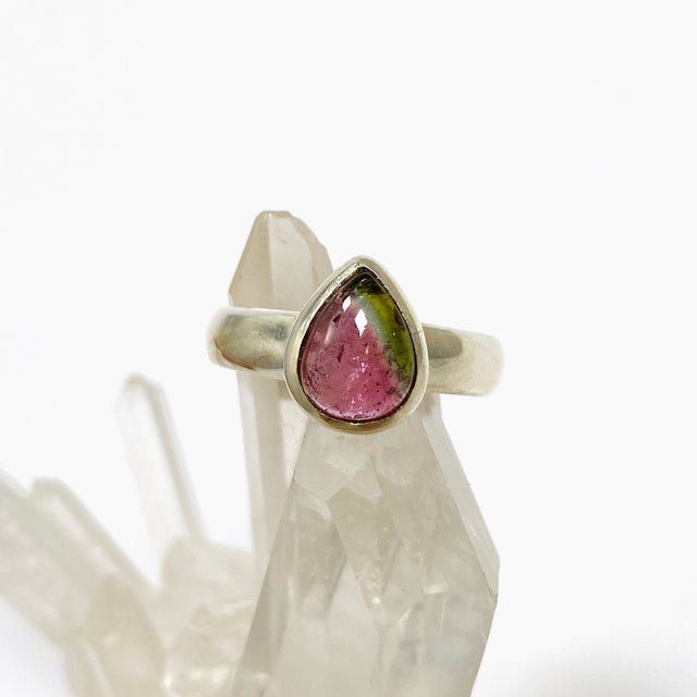 Watermelon Tourmaline Teardrop Cabochon Ring Size 5 PRGJ651