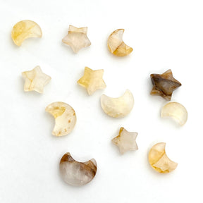 Golden Healer quartz is prized for its warm golden tones and is thought to radiate high-vibration energy, promoting healing, clarity, and spiritual connection. The moon and star shapes add a symbolic touch, representing intuition, growth, and guidance.