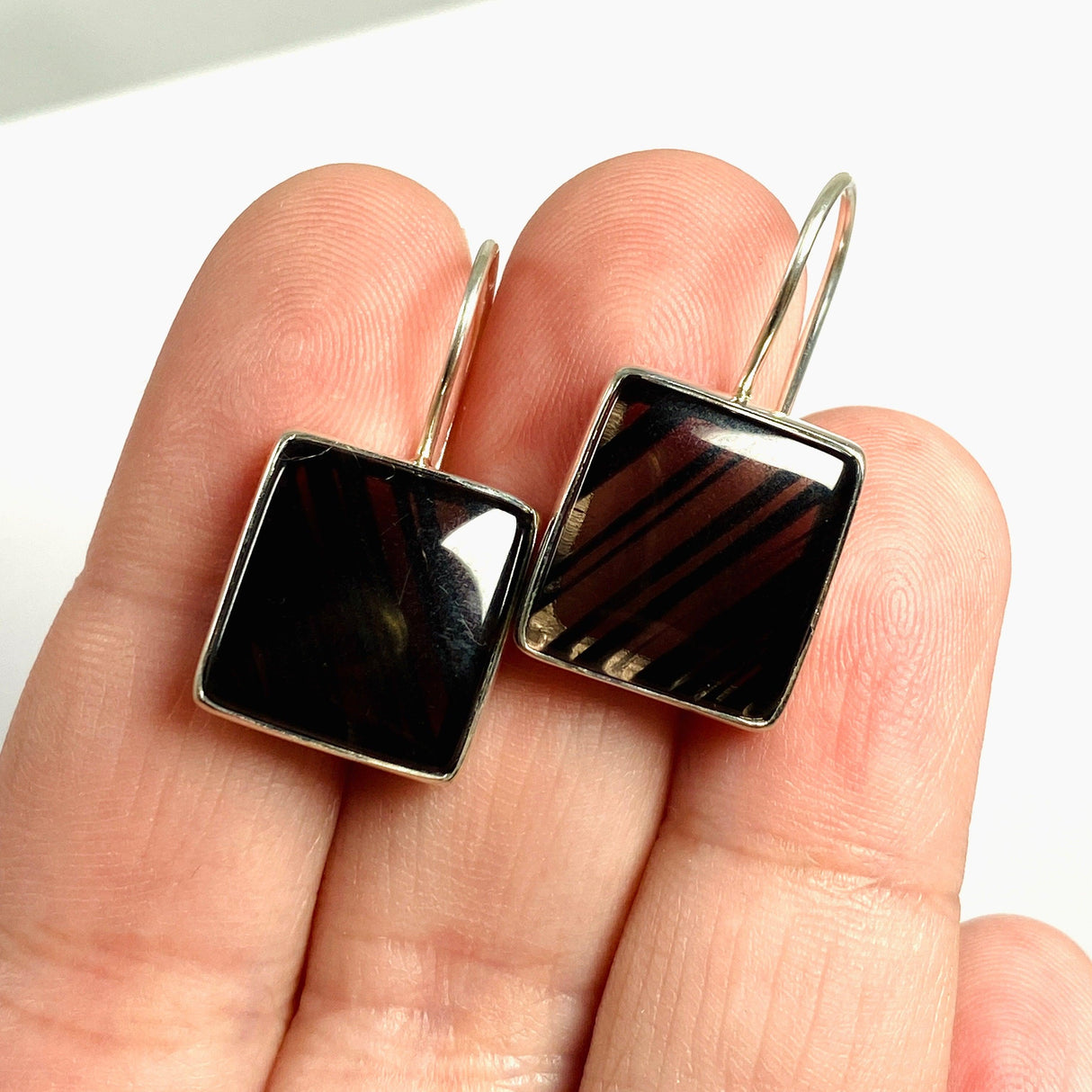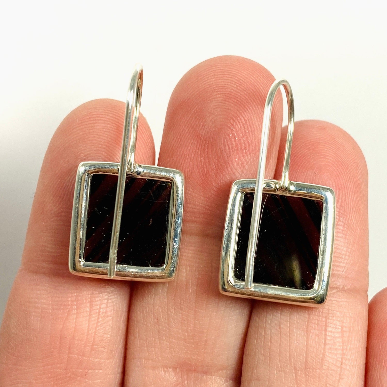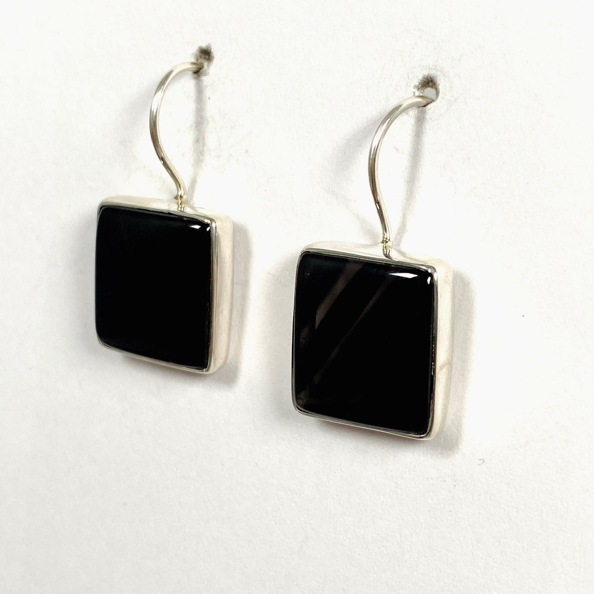 Midnight Obsidian fixed hook square earrings KEGJ1350